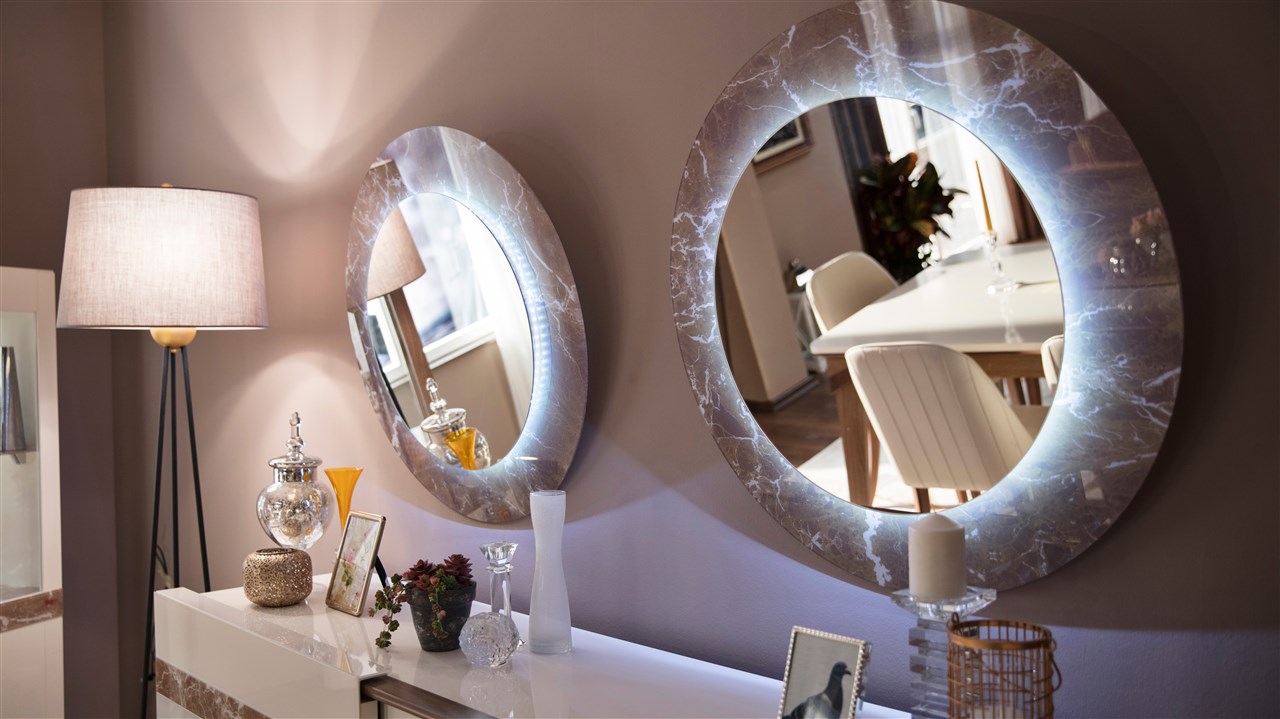 • Büfe aynası üzerinde şerit led aydınlatma sistemi kullanılmıştır